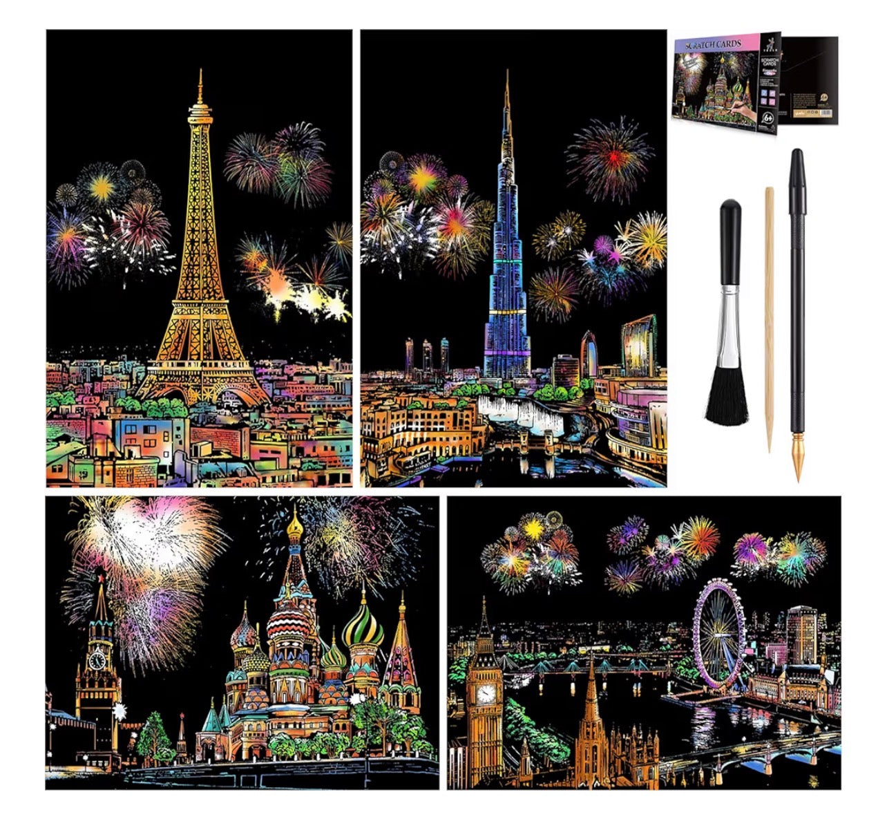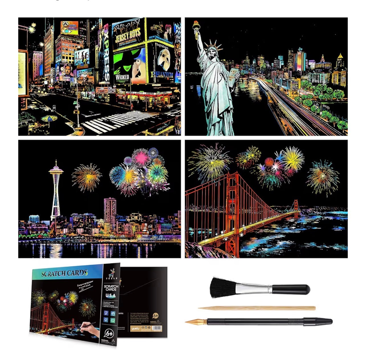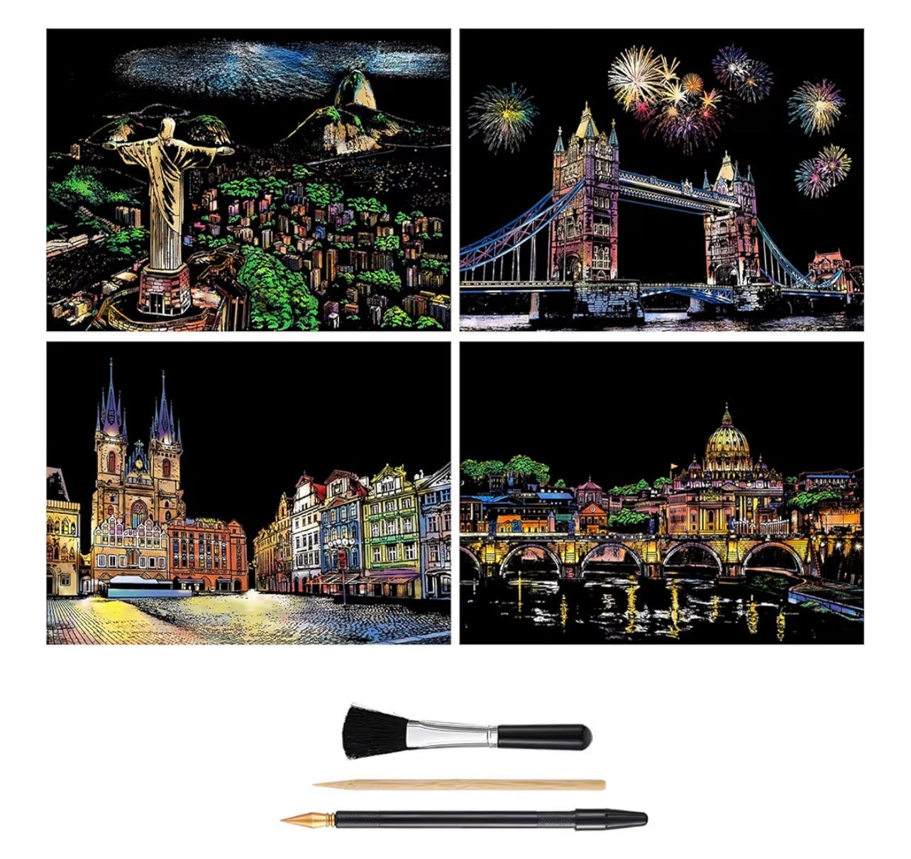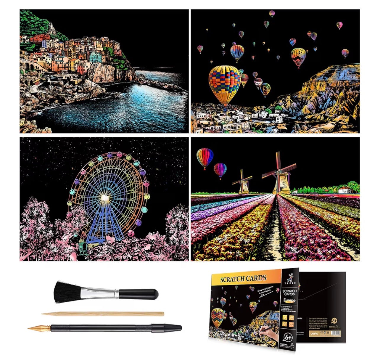 4x Prism Papers - Guided grey outlines show you exactly where to scratch, making it easy for anyone to uncover a vibrant, glowing picture.